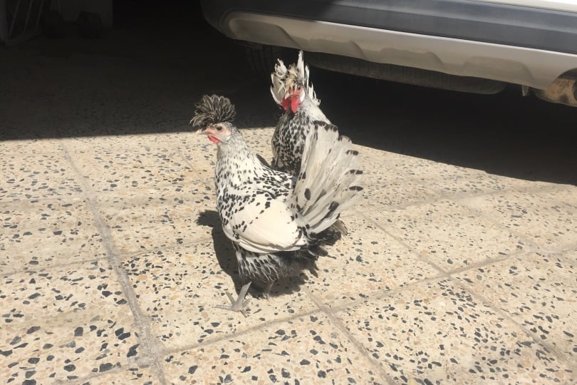 Polish chickens are known for the massive crest of splayed feathers on the tops of their heads. They are not from Poland but earn their name from this crest that resembles the feathered caps traditionally worn by Polish soldiers. They lay medium-sized white eggs and are excellent, persistent layers. Unfortunately, their characteristic crest obscures their eyesight and makes them particularly vulnerable to predators.