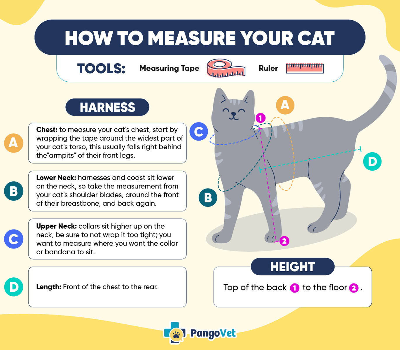 Ensure you measure snugly, but don’t pull the measure too tightly. If you don’t have a suitable measure, you can use a piece of string, put it snugly but not tightly around your cat’s neck, and hold the position where the string first overlaps. Take the string away and measure this using a ruler or tape measure. This will give the diameter of your cat’s neck and enable you to buy a collar that is designed for your cat’s neck girth.