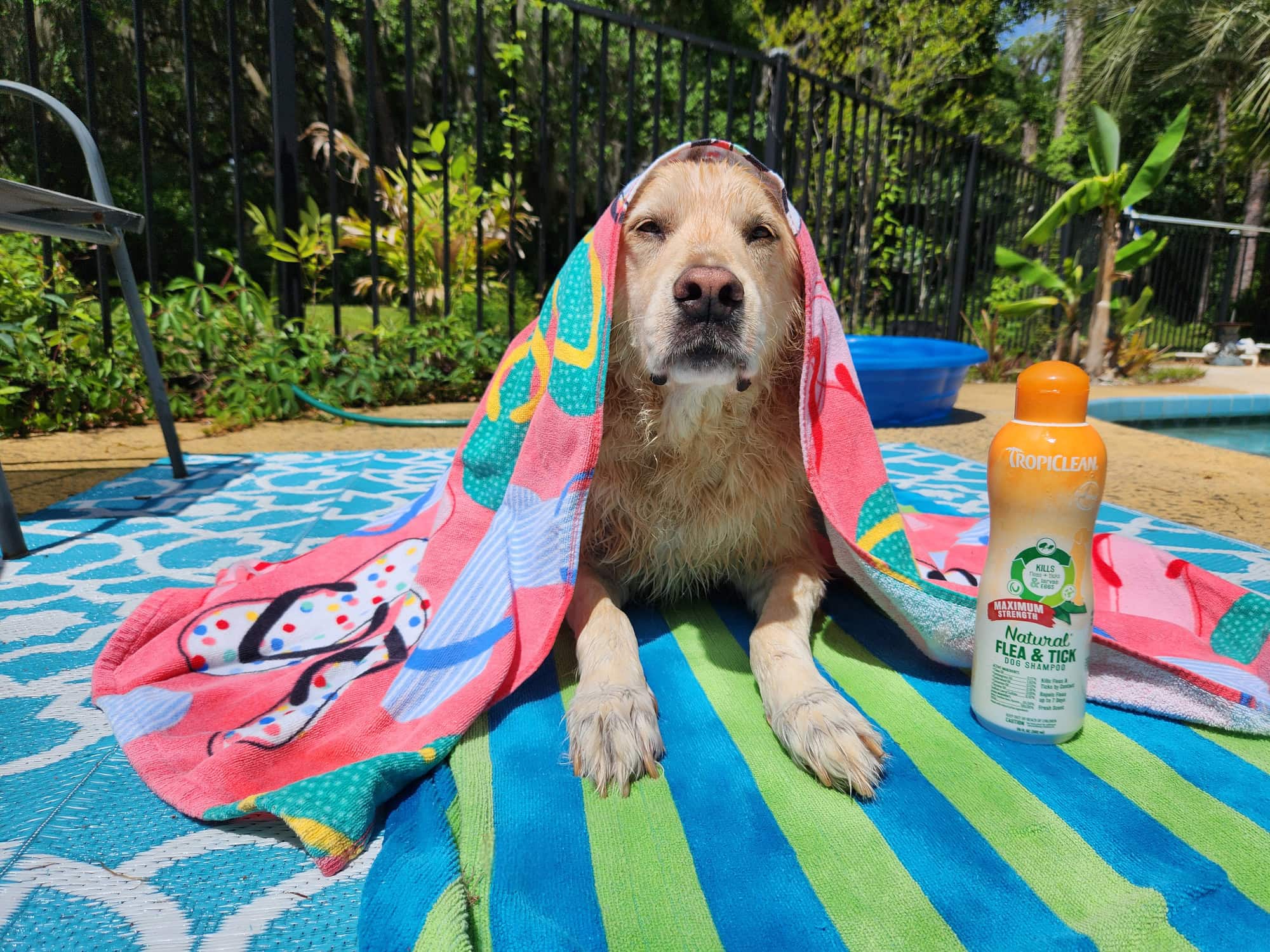 Several weeks ago, as it was heating up here in Florida, I began shopping for our spring and summer pet products. Since we spend a lot of time outside in warmer weather, dog shampoo was at the top of my list. I came across the PetCareRx website and saw that they carry a lot of pet products, so I did a search for dog shampoo. Several pages of shampoos appeared on my screen, but the first result was Tropiclean Maximum Strength Natural Flea and Tick Dog Shampoo.
