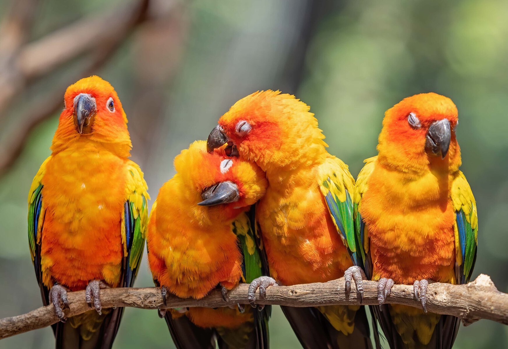Both the sun conure and Jenday conure live in the forests of Brazil. Researchers believe that the former may also reside in Guyana, but it’s uncertain. The sun conure is an endangered species, according to the International Union for Conservation of Nature and Natural Resources (IUCN). Less than 2,500 birds are thought to exist.