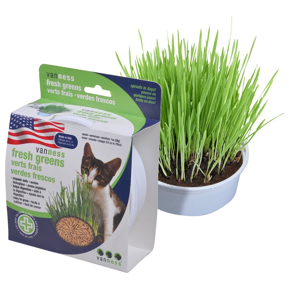 Van Ness Oat Garden Kit is a small kit with fresh oat grass and everything you need to get started. All you need to do is provide some light and water, and you will have fresh grass sprouting within a few days.