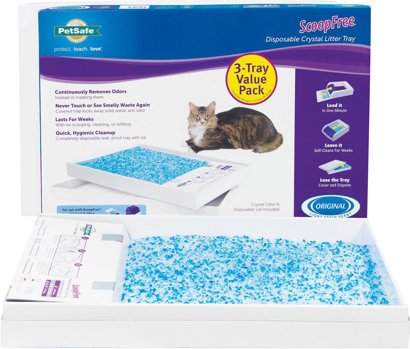 ScoopFree Premium Unscented Non-Clumping Crystal Cat Litter is a crystal cat litter that comes with its own pre-filled, self-cleaning tray. The litter and tray are completely disposable, making cleaning quick and easy. The litter has its own fresh scent that helps to control odors, and the tray only needs to be replaced every few weeks.