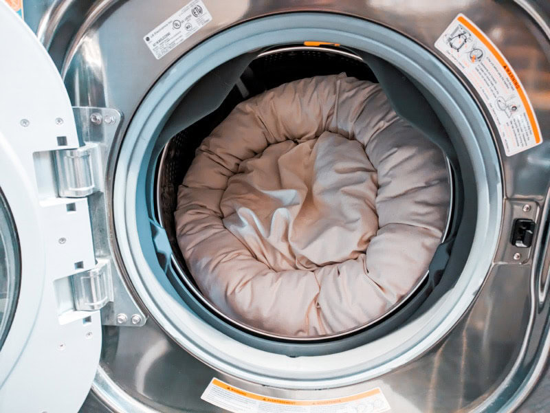 The typical recommendation is to wash these items at least once every 3 weeks on the cold cycle. You can also keep all surfaces wiped down. While smells don’t set into things like countertops and tables, it will help control all the excess hair and keep dander from making its way into carpets and furniture.