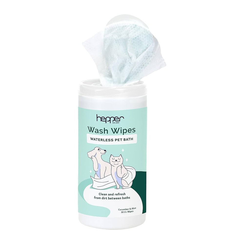 Hepper Wash Wipes clean away dirt, and they contain moisturizing ingredients, which means they also help encourage healthy, beautiful-looking fur. They’re easy to use, come in a handy pull tub that keeps them moist, and their aloe and cucumber scent will leave your pet smelling good, too.