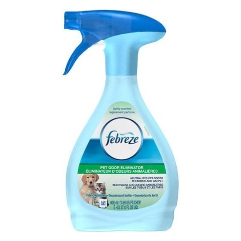 Febreze Pet Odor Eliminator is a great product to keep your home and fabrics smelling fresh. It can be used to eliminate odors or to refresh certain fabrics. It is available in various scents, is easy to use, and is safe to use around your pets.