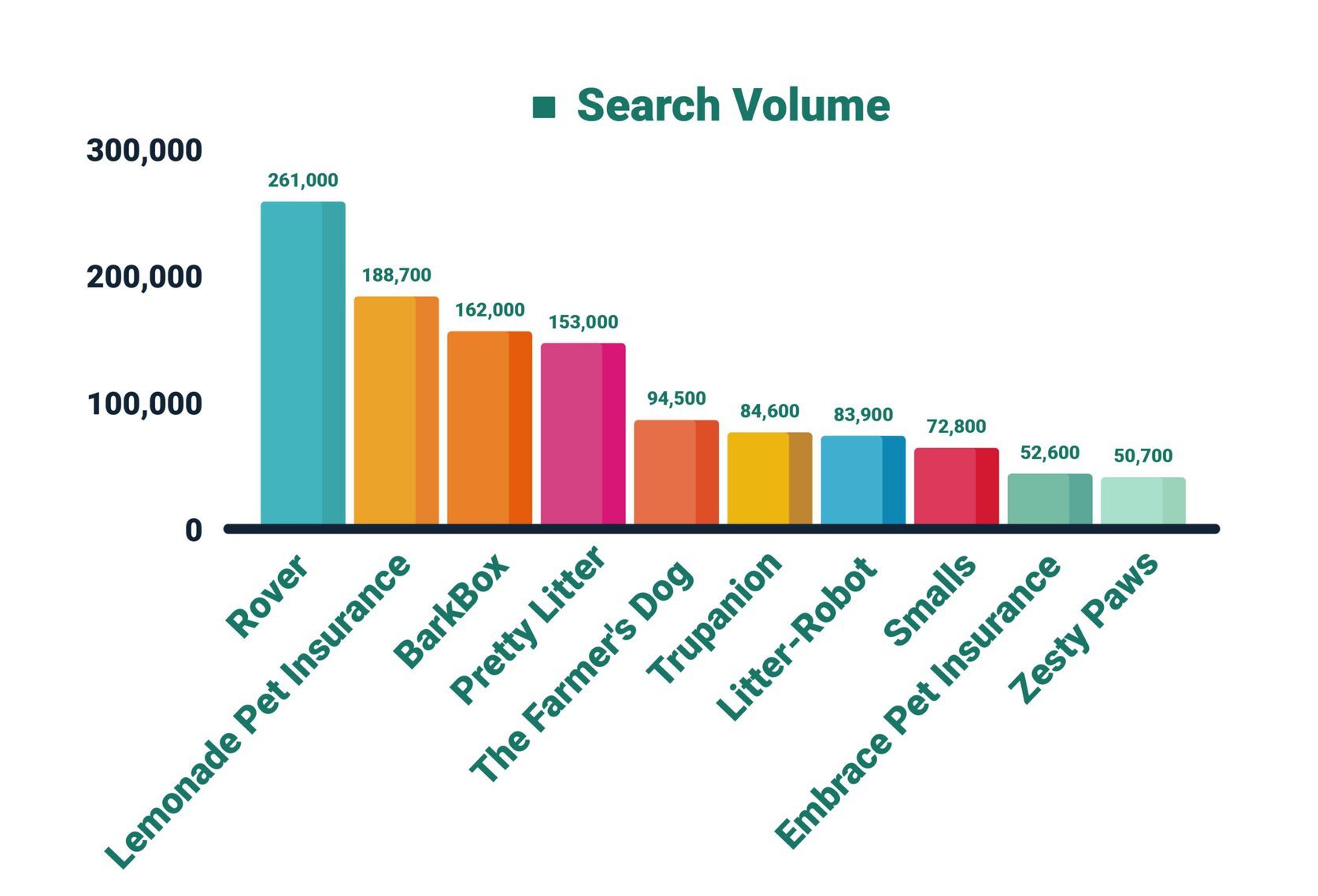 The pet industry is booming. The international pet market is currently worth a staggering $261 billion, and Americans spent close to $110 billion on their pets in 2022. Naturally, this makes the pet industry very competitive in almost every sector, from pet tech and pet insurance to pet consumables, gear, and more. We want to know which pet brands are the most in demand among US pet owners by analyzing each brand’s web search traffic, the estimated search volume for each brand as a keyword, and their overall social media popularity.