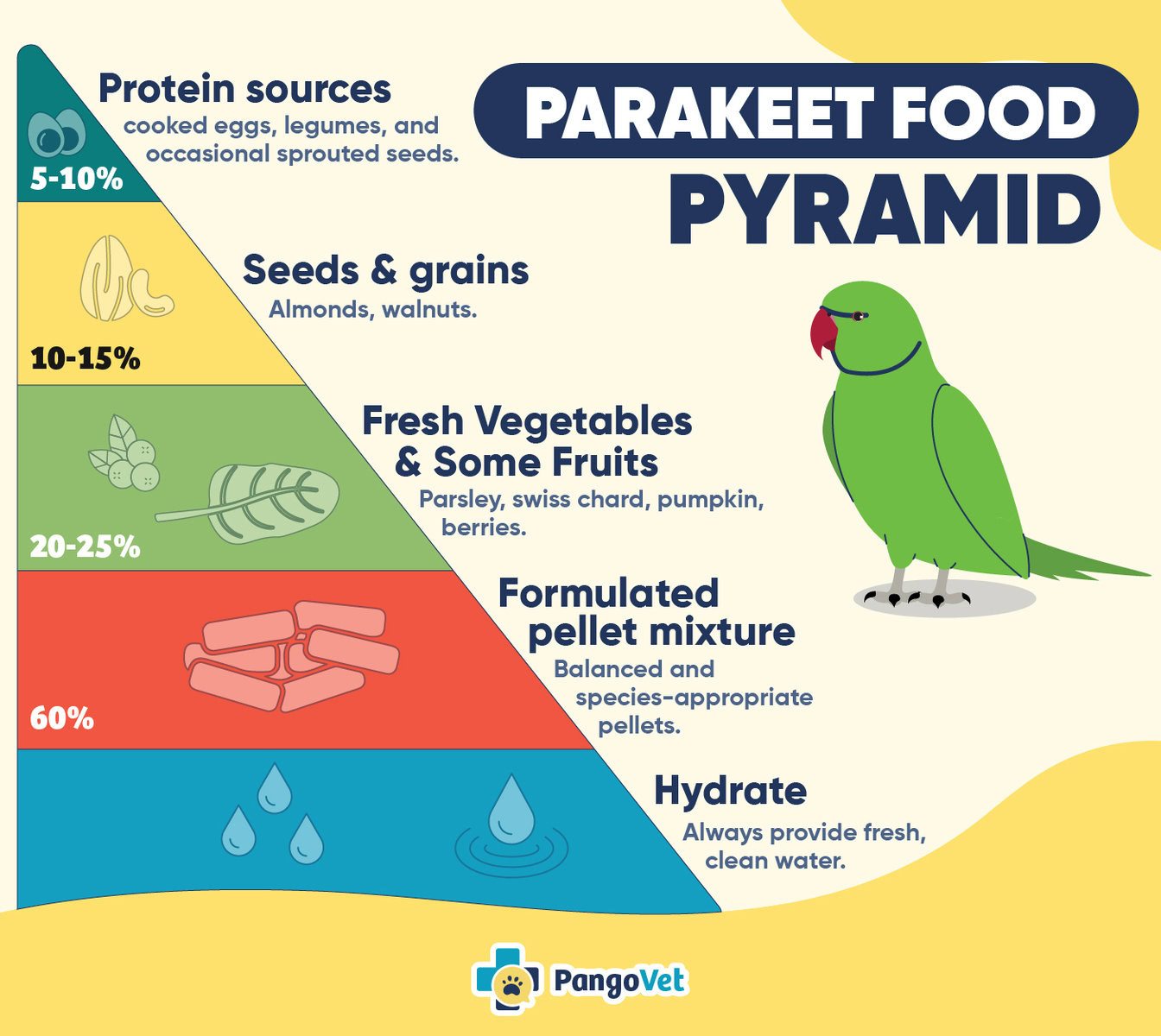 Your parakeet must be able to find this variety in the food you give it. Thus, its basic diet will include: