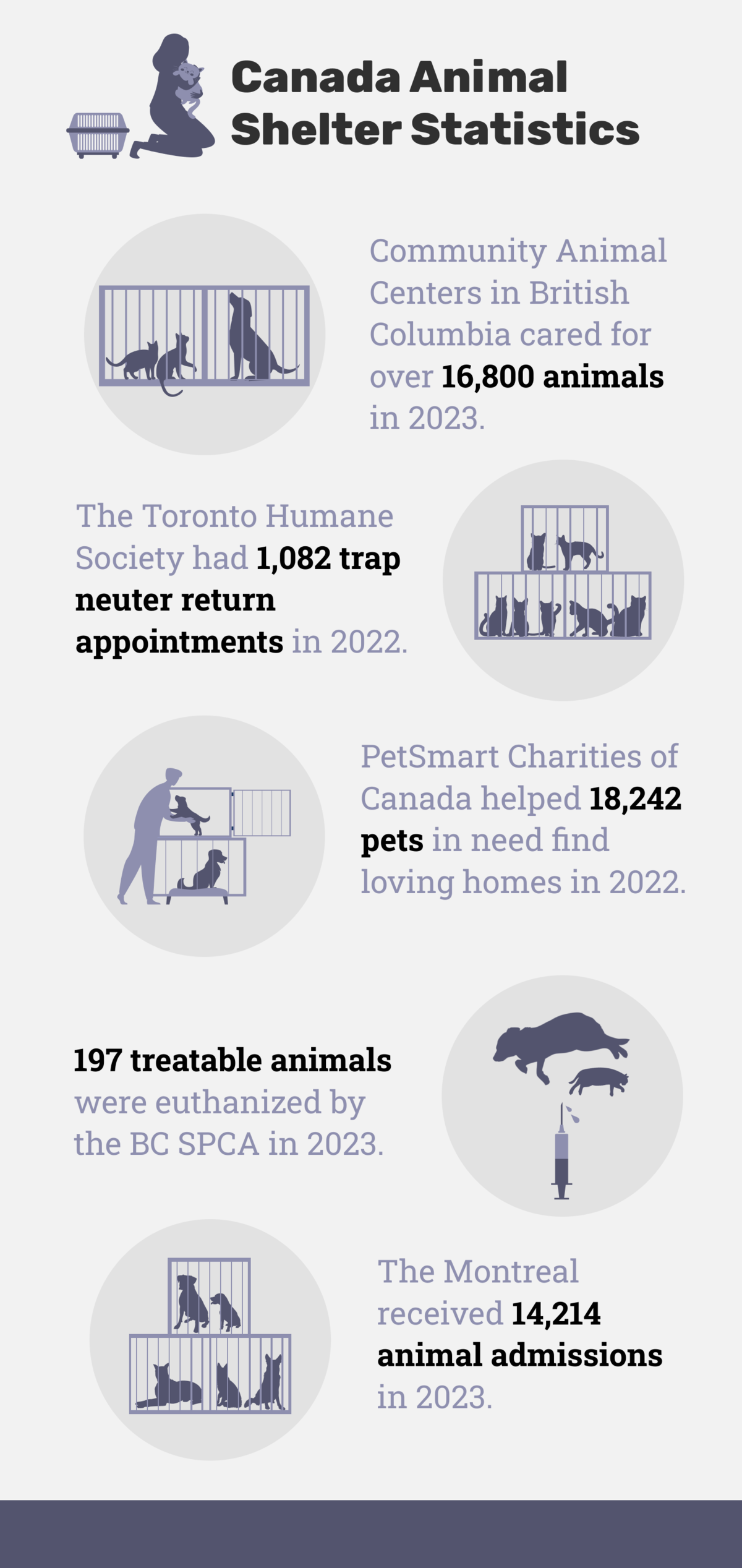 However, many animals are still waiting for their forever homes in Canadian shelters. Keep reading to learn 17 more fascinating Canadian animal shelter statistics.