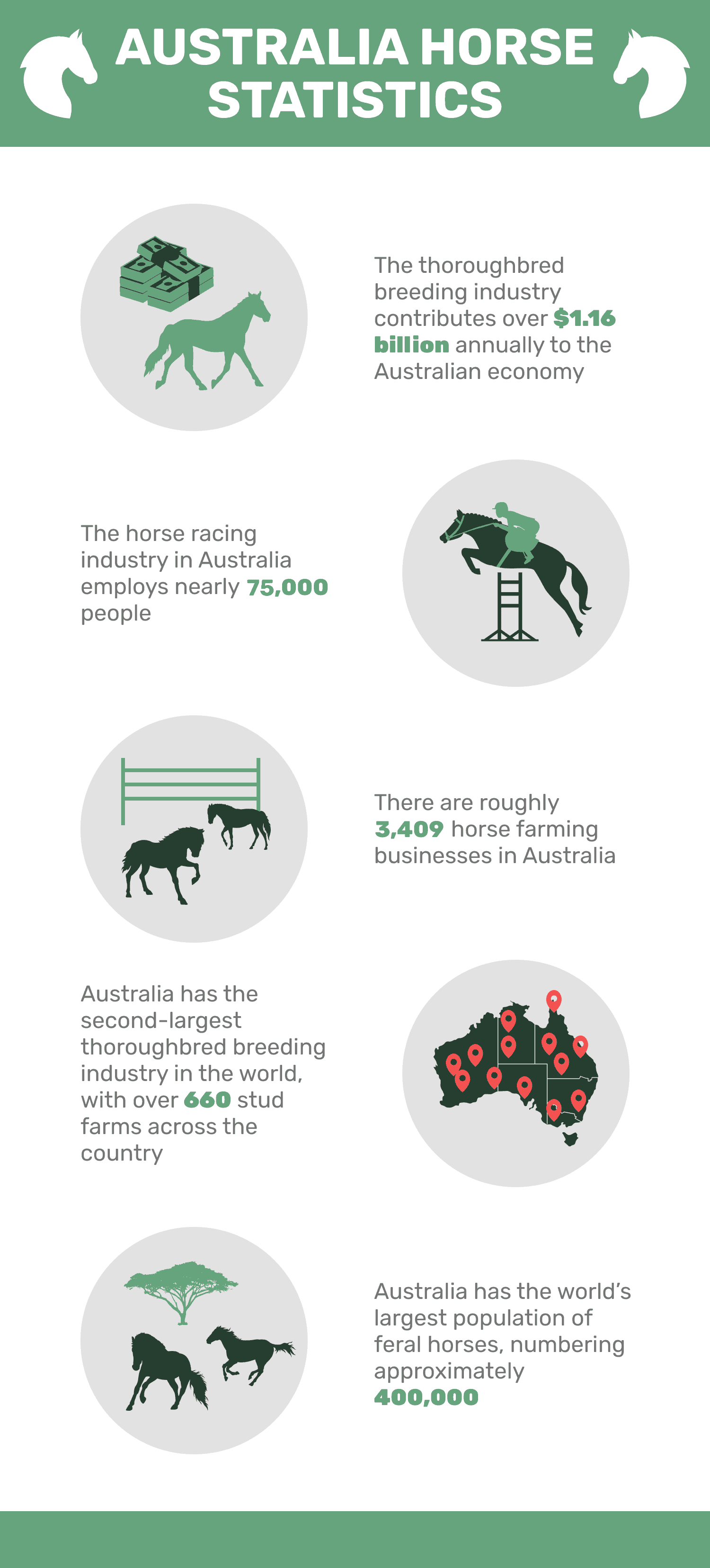 - Australia has the second-largest thoroughbred breeding industry in the world, with over 660 stud farms across the country.