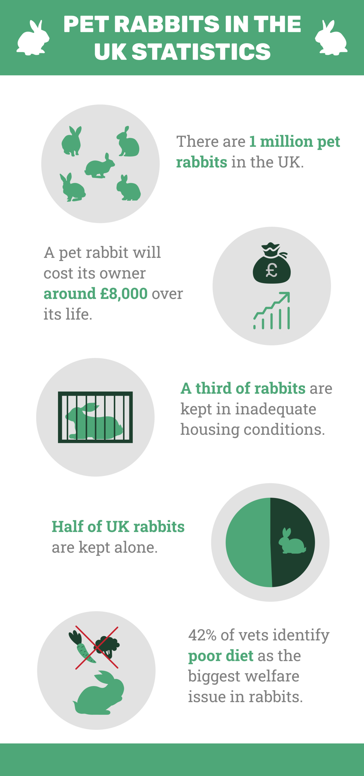 - 42% of vets identify poor diet as the biggest welfare issue in rabbits.